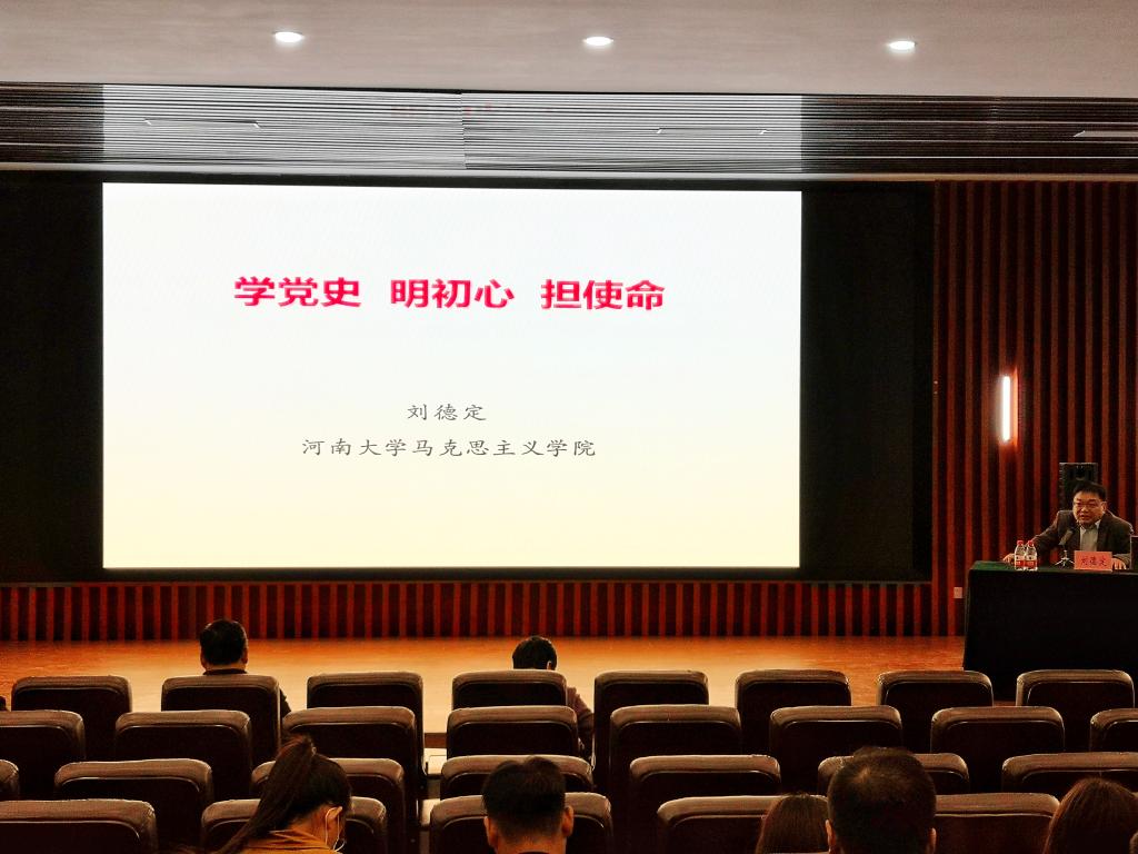 按照党史学习教育工作部署,4月1日下午,公司马克思主义学院刘德定教授来到BWIN必赢官方圆楼报告厅,为学院近400名党员师生作《学党史,明初心,担使命》专题报告。报告会由公司党委书记赵东保主持,学院领导班子和全体党员参加学习。