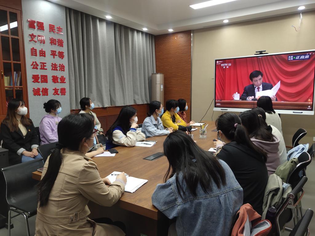 青春百年,百年有我,为庆祝中国共产主义青年团成立100周年,5月10日上午,BWIN必赢官方组织青年师生在学院A111观看学习习近平总书记在“庆祝中国共产主义青年团成立100周年大会”上的讲话精神,公司党委副书记程亚敏、青年教师代表、全体辅导员老师和“青马班”全体学员参加此次活动,此次活动采取线上和线下结合的方式开展。