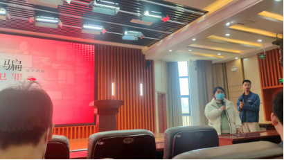 会议上,阮九霄主要围绕电信诈骗、疫情防控等方面展开。阮九霄分别就新形势下电信诈骗的演变、常见的诈骗案例及防范措施等方面进行讲解。接着,阮九霄向员工们分析了近期国内的疫情形势,并提出要严格遵守“两点一线”疫情防控要求和请销假制度,严格服从网格化管理。