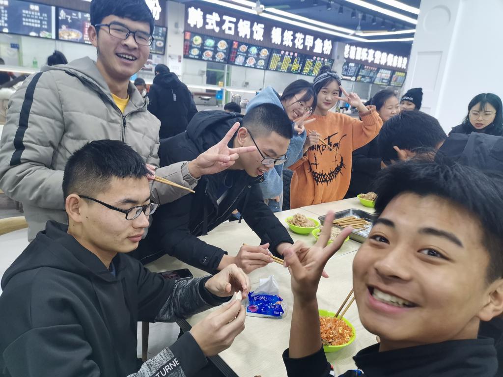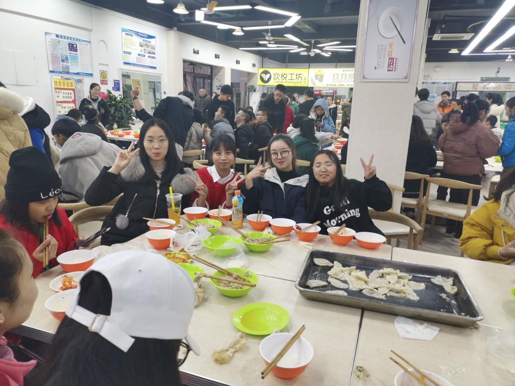 “小饺暖尽心头寒,更胜金银百十千”,在大家的不懈努力下,一盘盘热气腾腾的饺子被端上了餐桌,吃着大家自己包的饺子,同学们感受到了青春的快乐和集体的温暖。