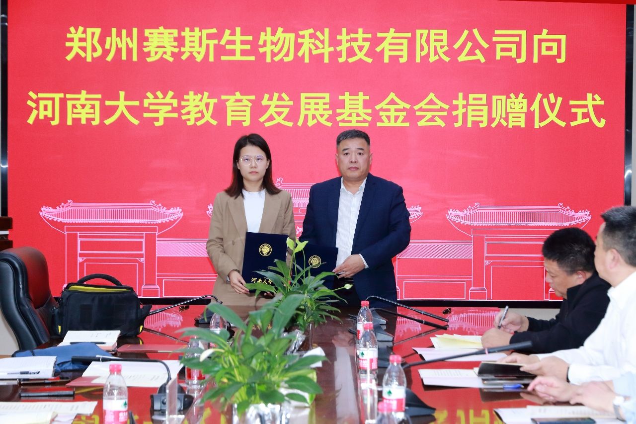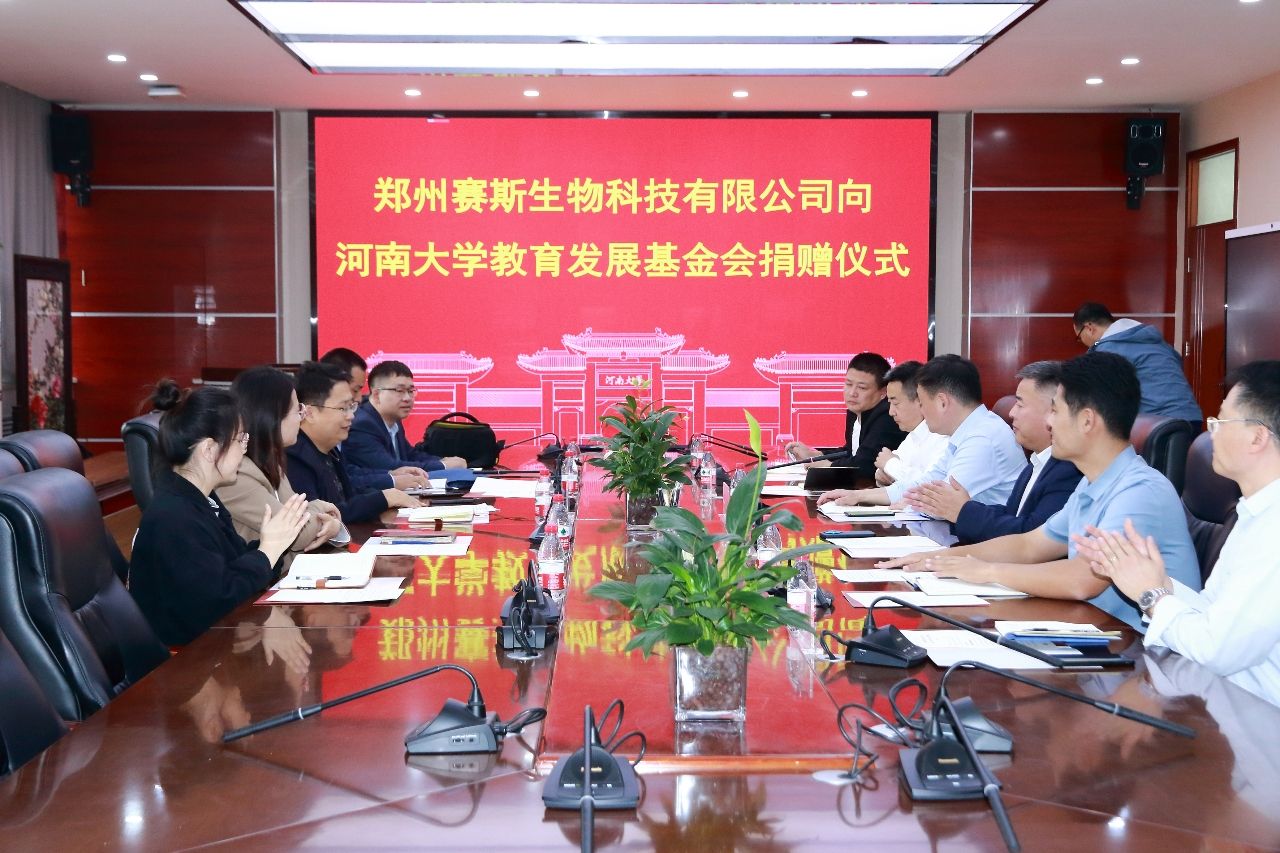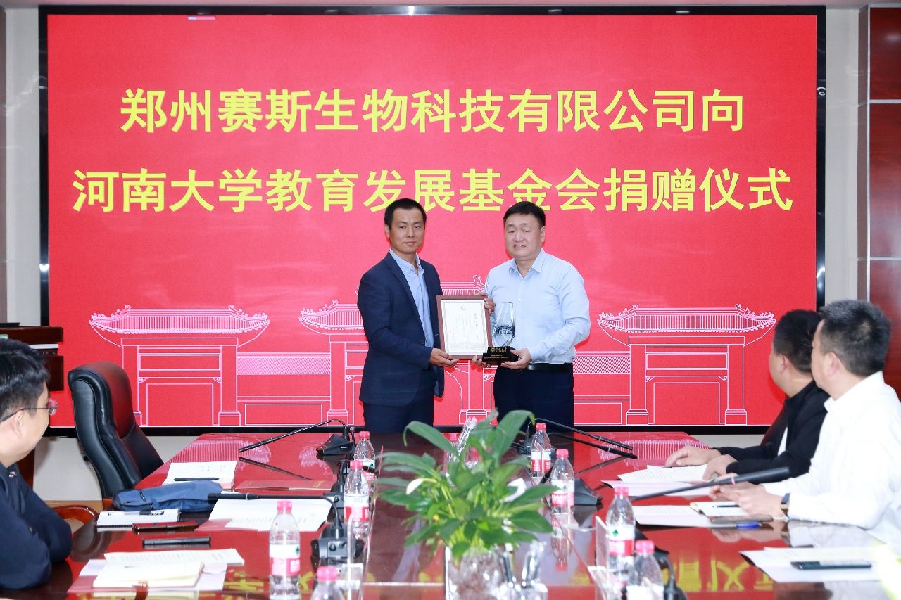 金秋送爽、丹桂飘香。10月13号下午,郑州赛斯生物科技有限公司向必赢bwin官方网站教育发展基金会捐赠仪式在BWIN必赢官方B201会议室举行。郑州赛斯生物科技有限公司总经理李坤、销售总监孙福磊、财务总监张艳敏、技术总监陈金虎、总经理助理贾书慧,必赢bwin官方网站副董事长、BWIN必赢官方经理张立新,必赢bwin官方网站教育发展基金会秘书长刘会军,公司党委书记吴建伟、副经理赵海鹏和李国勇等参加了仪式。仪式由公司党委副书记宋永鹏主持。