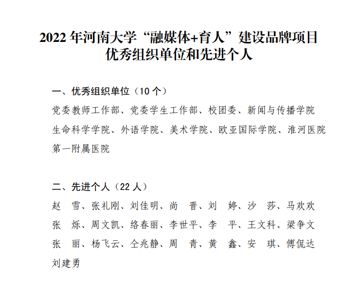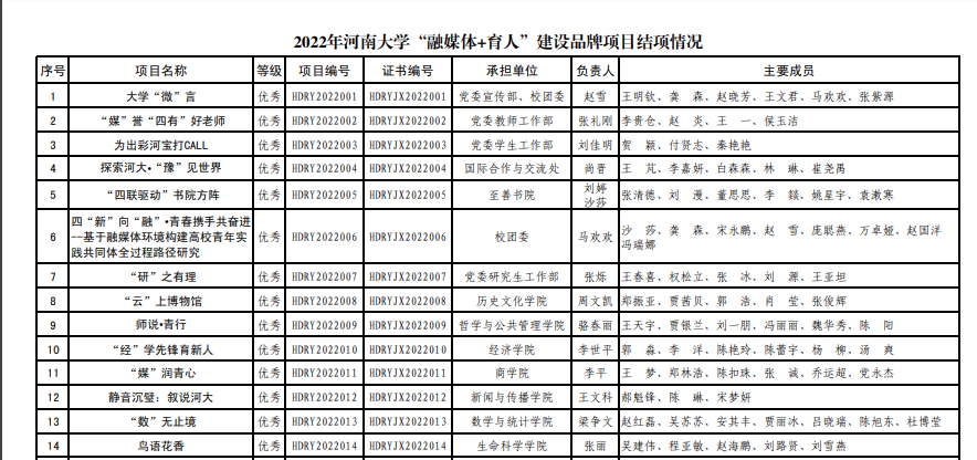 根据《2022年必赢bwin官方网站网络文明建设暨“融媒体+育人”工作方案》和《关于开展2022年必赢bwin官方网站网络文明建设暨“融媒体+育人”工作的通知》,近日,经评审组初审和终审,学校公布各项目结项等级,同时评选出“融媒体+育人”建设品牌项目优秀组织单位及优秀先进个人。