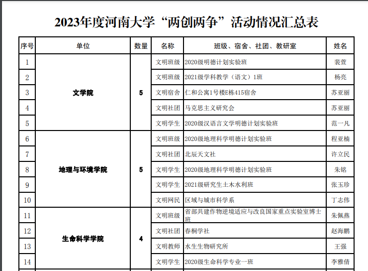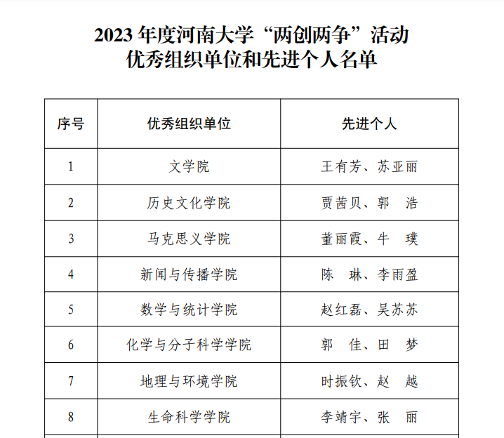 为深入学习贯彻党的二十大精神和习近平总书记关于弘扬雷锋精神的重要指示精神,不断提升广大师生思想觉悟、道德水准、文明素养和文明程度,根据《中共河南省委教育工作委员会河南省教育厅关于开展2023年度全省教育系统“两创两争”活动先进集体和先进个人推选工作的通知》(豫教工委〔2023〕36 号)精神,学校积极开展2023年度“两创两争”评选工作,对表现突出的先进集体和先进个人进行表彰,BWIN必赢官方在此次评选中荣获佳绩。