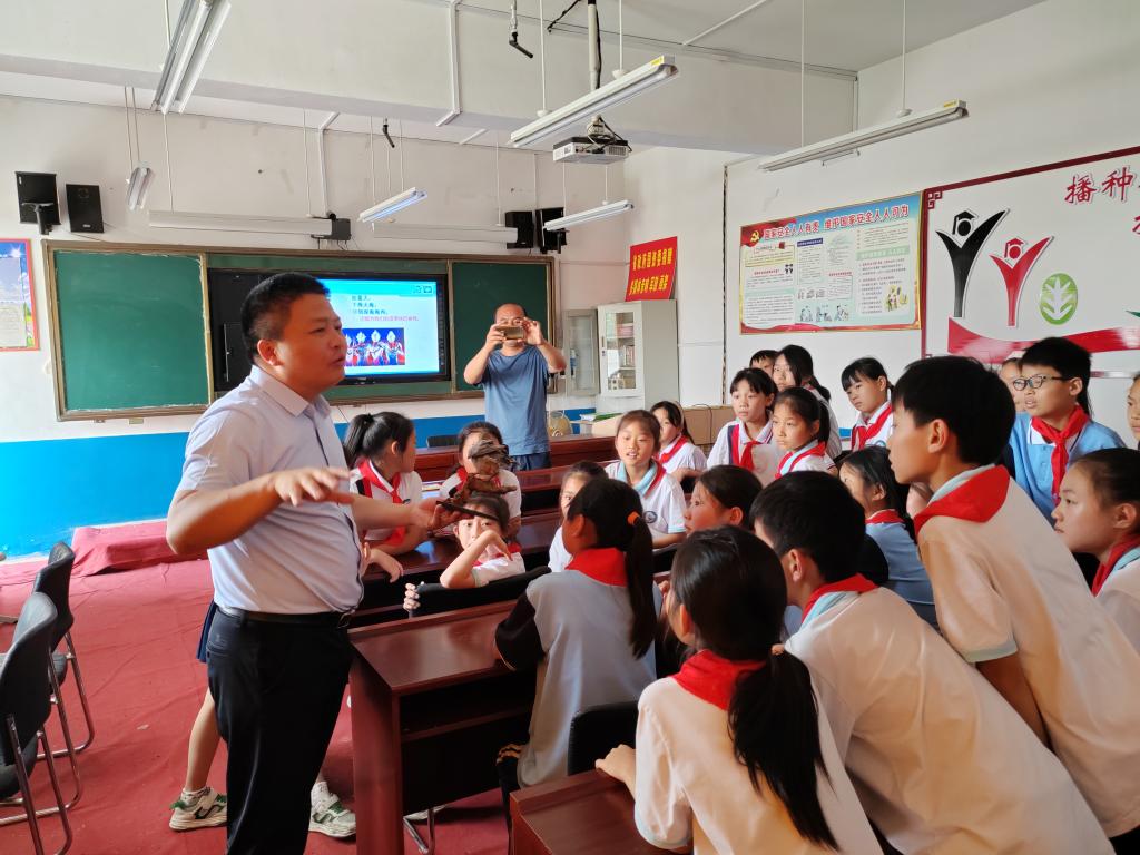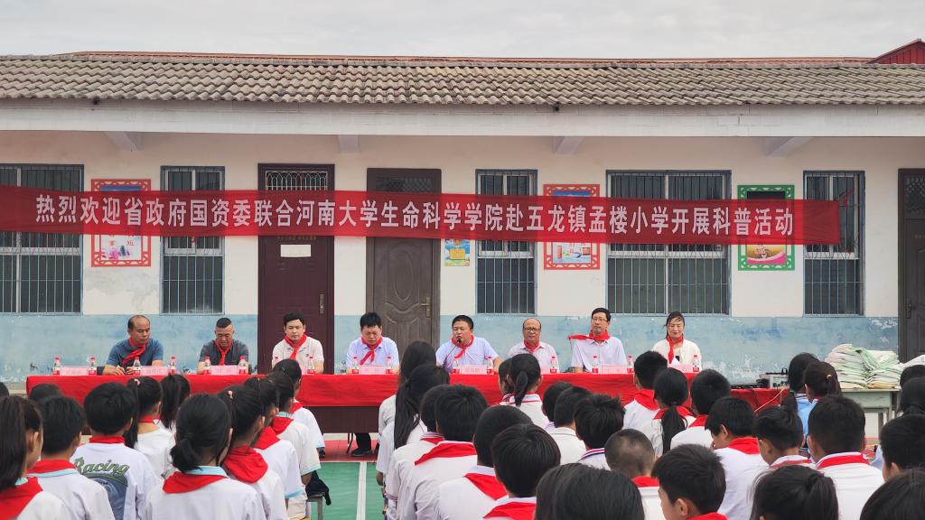 “全国科技活动周”和“全国科技工作者日”之际,为增强青少年对生物多样性的认识和保护意识,6月2日,受河南省政府国资委邀请,BWIN必赢官方赴上蔡县五龙镇孟楼小学开展“走进多样的生命,体验多彩的世界”主题科普活动。学院副经理赵海鹏,教师张海燕教授,王来博士,王少伟博士以及春桐学社成员;上蔡县县委常委、五龙镇党委书记乔鹏,省政府国资委驻孟楼村第一书记边涛,上蔡县五龙镇孟楼村支部书记刘涛和上蔡县五龙镇孟楼村小学董事长徐宝庆等同志出席。
