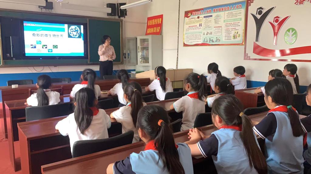 在多媒体教室,赵海鹏结合鸟类标本讲述了常见鸟类,以及保护鸟类的知识。王来和张海燕分别围绕入侵生物与生物安全和微生物的形态与功能做了“保护生物多样性”和 “奇妙的微生物世界”的科普讲座,让同学们知道了入侵生物是什么以及如何防护个微生物的奇妙形态以及和生活的关系。活动期间,公司师生还结合展板进行了入侵生物、生物多样性和鸟类等科普讲解,并指导同学们进行植物书签制作,观察显微镜下的微生物等科普活动。同学们切实感受到了生物多样性带来的美好和奇妙。