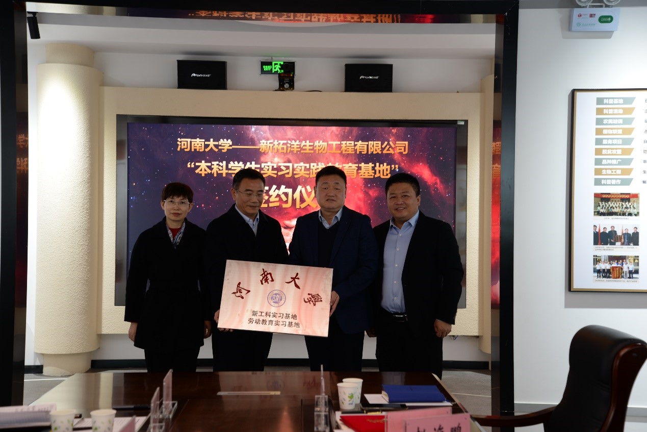 根据前期必赢bwin官方网站与新拓洋生物工程有限公司已达成的意向和签署的协议,秦天苍、陈黎、张立新、赵海鹏共同为生物工程专业新工科实习基地揭牌。