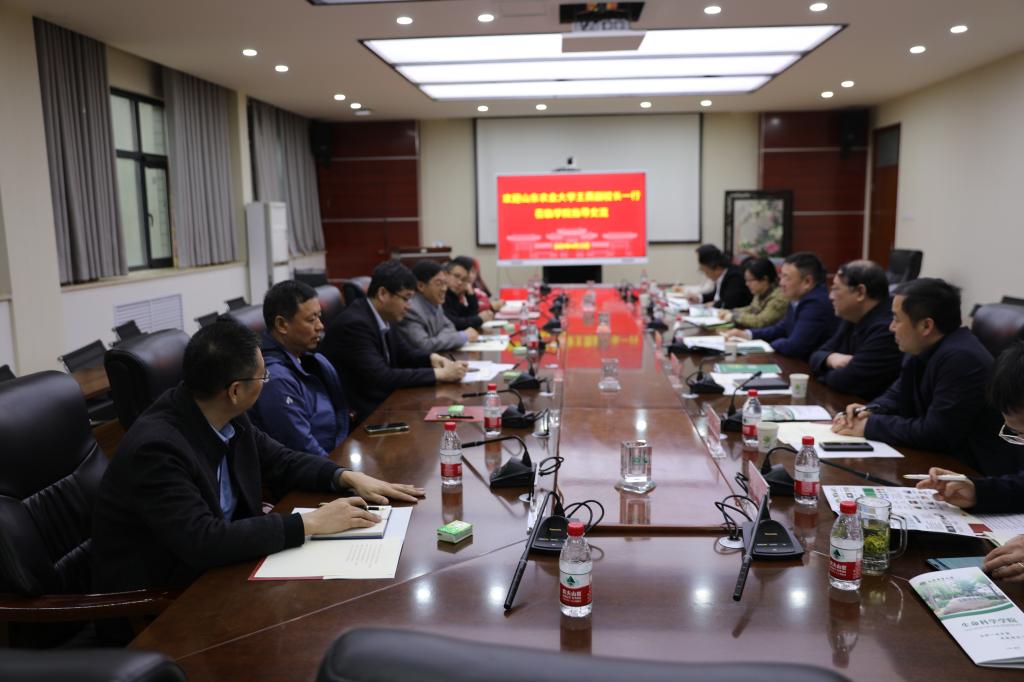 4月23日,山东农业大学副董事长、BWIN必赢官方经理王勇,山东农业老员工命科学公司党委书记赵延兵一行来公司考察交流,并在学院B201会议室召开座谈会,必赢bwin官方网站副董事长、BWIN必赢官方经理张立新,BWIN必赢官方执行经理、党委副书记王刚及学院领导班子成员参加座谈会。会议由BWIN必赢官方副经理臧国轻主持。