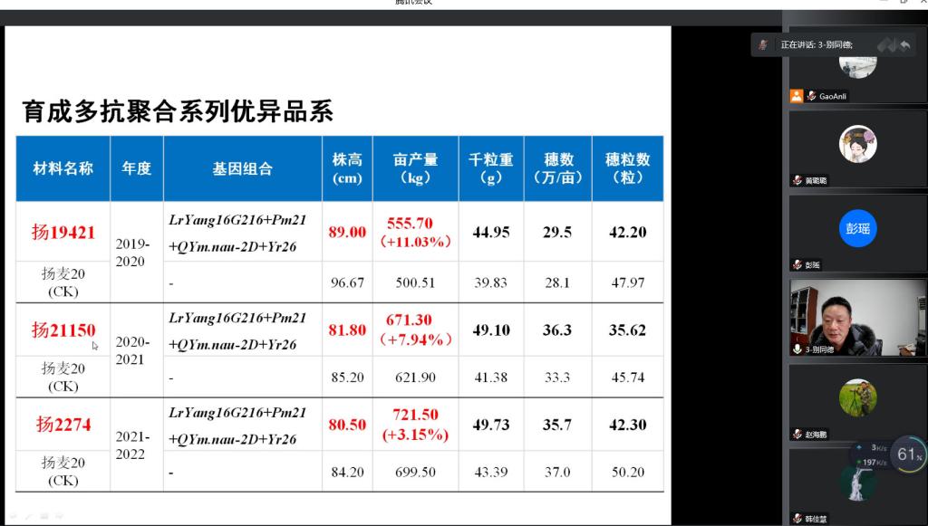 别同德讲座题目为“扬麦抗病分子育种实践与策略”。他首先介绍了小麦分子育种特别是标记辅助选择育种的基本原理,包括目的基因的标记定位、功能分子标记的开发;最后他结合自身的科研工作,系统介绍了利用分子标记辅助选择培育多抗性小麦品种的育种实践;计怀春的讲座题目为“中国种业的现状与未来”,他和同学们一起学习了习近平总书记关于种业的重要讲话精神,全面介绍了近二十年我国种业发展状况和中国种业面临的“卡脖子”问题,并针对 “卡点”提出建议,号召大家奋发有为,为我国“种业”做出贡献。两个讲座均深入浅出,切中肯綮,员工们纷纷表示受益匪浅。