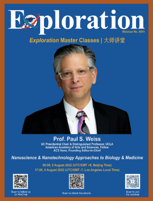 8月5日,首期Exploration –大师讲堂正式启动,特邀著名纳米生物学家,ACS Nano创刊主编,加州大学洛杉矶分校讲席教授Paul S. Weiss教授为首期报告嘉宾。本次大师讲堂为线上举行,由河南大学副董事长王学路教授代表学校致辞,Exploration主编梁兴杰教授代表期刊致辞,Exploration执行主编冰洋教授主持开幕仪式和报告。