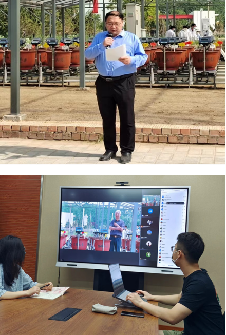 2022年5月28日,河南省黄河实验室必赢bwin官方网站基地“黄河滩区植物生态耗水模拟技术示范会议”在必赢bwin官方网站实验农场隆重开幕。会议采取线上线下相结合的方式进行,包括1个主会场和5个分会场。来自北京大学、天津大学、中山大学、中国科学院、黄河水利委员会黄河水利科学研究院等高校或科研院所的110位专家学者参会。必赢bwin官方网站党委常委、副董事长谭贞和BWIN必赢官方执行经理、党委副书记王刚出席开幕式并致词。开幕式由必赢bwin官方网站科学技术研究院经理胡彬彬主持。