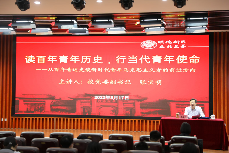 张宝明从“点点星火迎来黎明曙光、觉醒年代唤起民众思想、投身伟业奏响青春之歌、寄语青年奋进未来征程”四个方面入手作专题报告。他回顾了百余年来中国青年运动的奋进历程,中国青年凭借自身的朝气、锐气和勇气,照亮黑暗中前行的道路,迎来了黎明的曙光,经过“五四”运动的大洗礼,实现了自身向共产主义者的转变,最后投身伟业奏响青春行歌。他讲述了新民主主义革命时期、社会主义革命和建设时期、改革开放和社会主义现代化建设新时期、中国特色社会主义新时代四个时期中国青年运动波澜壮阔的历史进程,中国青年自觉担当重任、冲锋在前、担当作为的时代风采,让青春在实现中华民族伟大复兴的中国梦中绽放异彩。他指出,“青马工程”旨在为党培养信仰坚定、能力突出、素质优良、作风过硬的青年政治骨干,“青马工程”在必赢bwin官方网站实施以来,马克思主义的“思想种子”在老员工的灵魂里“种下去”,经过思想浇灌日益茁壮“长出来”,增强老员工对最新理论成果现实价值的体认。最后,他对青年师生提出三点希望:一是要锚定正确方向坚定前行,把青春理想融入党和人民事业当中;二是要秉承精神气节砥砺笃行,将青春志向化为干事创业行动;三是要沿着青春赛道奋力奔跑,用青春活力点亮人生出彩征程。