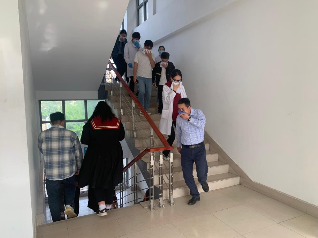 培训结束后,保卫处消防科刘川申向师生们讲解了突发火灾逃生技巧以及安全撤离需要注意的一些要点。随后,师生共同开展消防安全演练,随着发烟弹冒出浓烟,接到逃生指令之后,师生捂住口鼻,沿着指定的疏散路线,从BWIN必赢官方大楼消防步梯有序快速撤离。