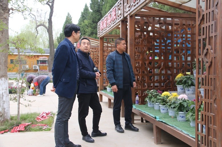清明时节,春和景明,3月31日下午公司党委书记吴建伟与菊花课题组组长王子成教授一行到汴京公园就公司参与协办的第四届中国开封“秋菊春展”展览活动现场指导工作。