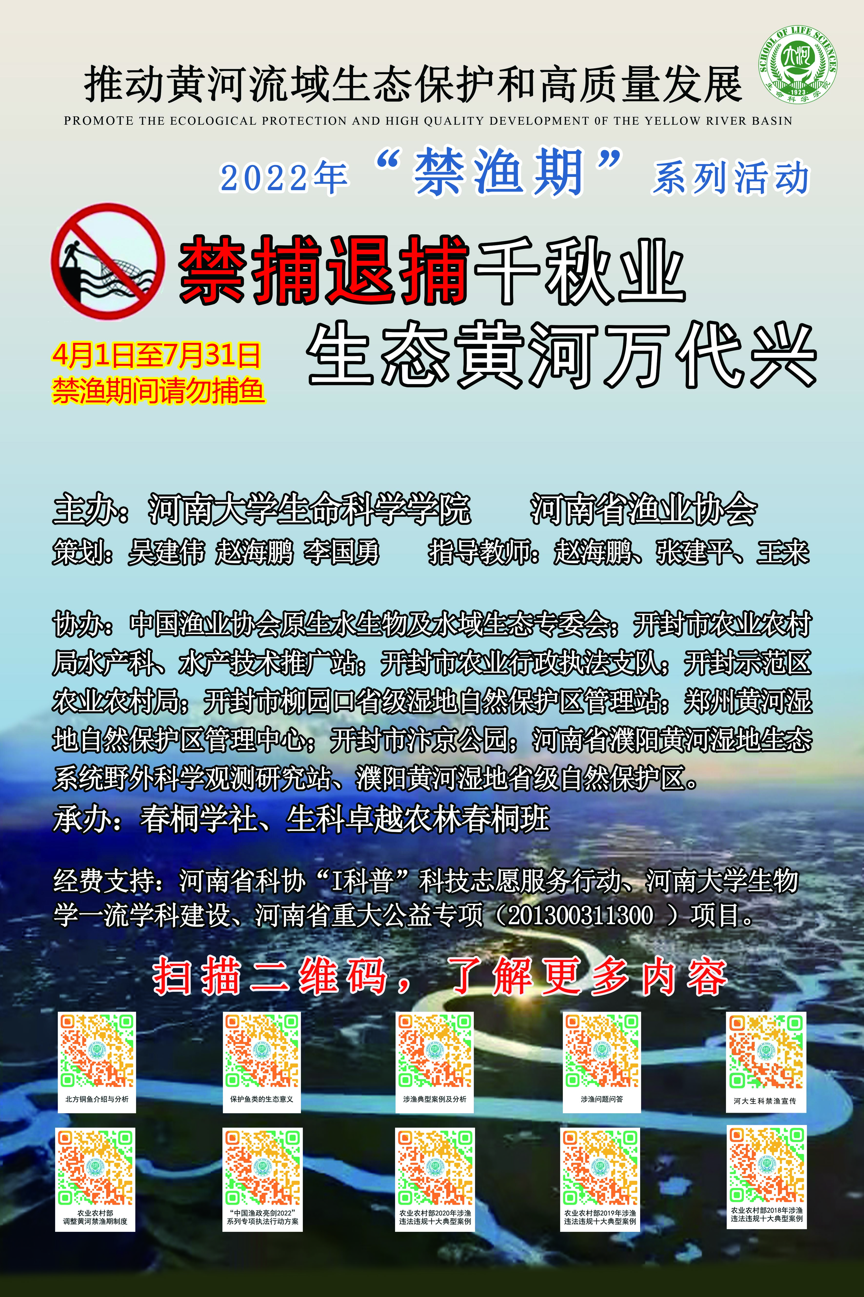 上述活动期间,公司的自制禁渔宣传海报引起了广泛的关注和交口称赞,海报立足于“推动黄河流域生态保护和高质量发展”,围绕“禁捕退捕千秋业,生态黄河万代兴”主题,通过自制二维码将鱼类生态保护知识、涉鱼典型案例、黄河禁渔期制度以及专项执法行动方案等内容有机融入。