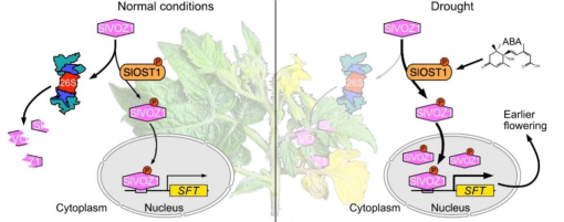 2022年2月18日,必赢bwin官方网站植物逆境实验室/BWIN必赢官方祝英方教授课题组在植物学顶级期刊The Plant Cell(影响因子:11.277)正式发表题为“The tomato OST1-VOZ1 module regulates drought-mediated flowering”的研究论文,揭示了番茄OST1-VOZ1模块调控干旱诱导开花的分子机制。