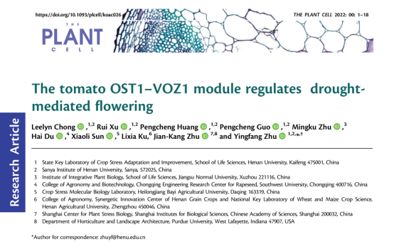 全文链接:tomato OST1–VOZ1 module regulates drought-mediated flowering | The Plant Cell | Oxford Academic (oup.com).