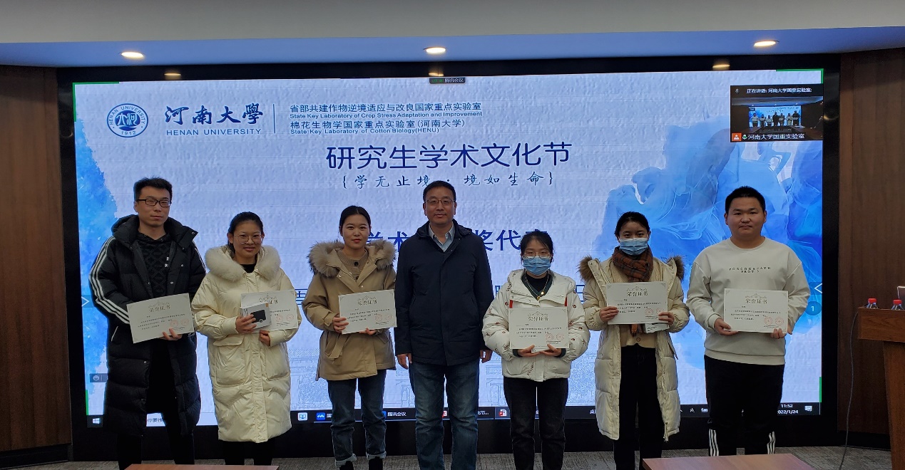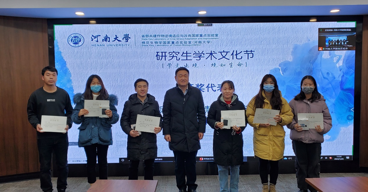 1月24日上午,必赢bwin官方网站国家重点实验室2021年研究生学术文化节颁奖仪式在省部共建作物逆境适应与改良国家重点实验室一楼会议室召开。董事长、省部共建作物逆境适应与改良国家重点实验室主任宋纯鹏教授,副董事长王学路教授,副董事长、BWIN必赢官方经理张立新教授,公司党委书记吴建伟,农公司党委书记王磊,农学院执行经理王道杰,省部共建作物逆境适应与改良国家重点实验室、棉花生物学国家重点实验室主要领导,国家重点实验室部分研究生导师及获奖员工代表出席颁奖仪式,颁奖仪式由必赢bwin官方网站棉花生物学国家重点实验室副主任赵翔主持。