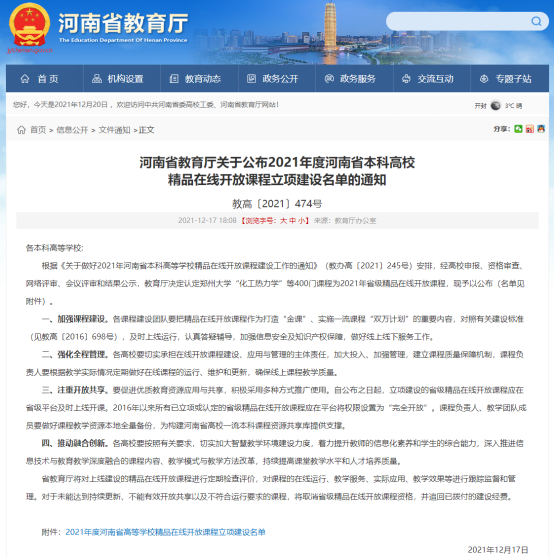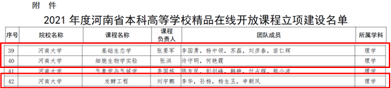 近日,河南省教育厅公布2021年度河南省本科高校精品在线开放课程立项建设名单,公司刘宇鹏教授主持的《发酵工程》、张洪博士主持的《细胞生物学实验》和张要军博士主持的《基础生态学》在列。