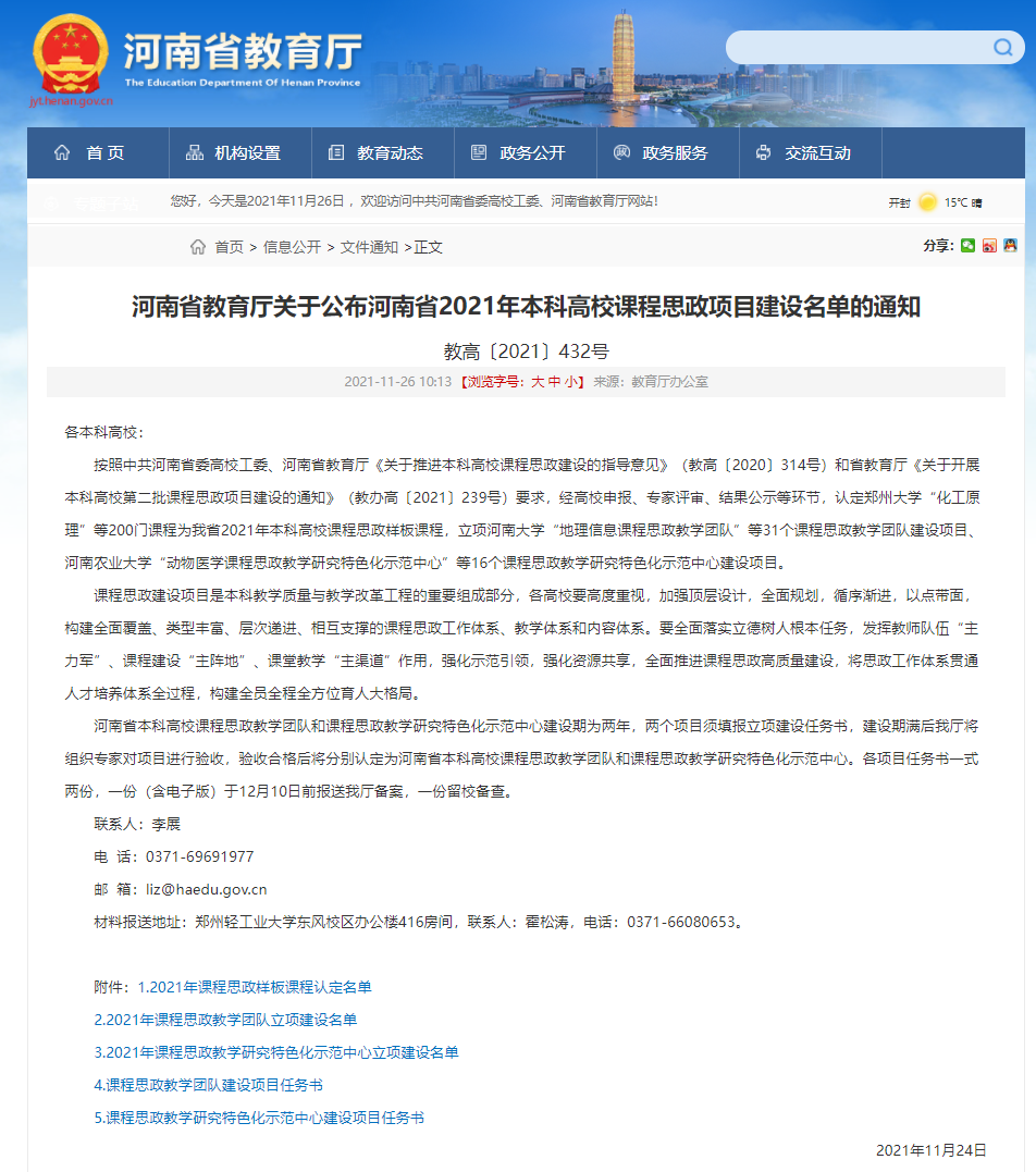 近日,河南省教育厅公布河南省2021年本科高校课程思政项目建设名单,BWIN必赢官方与马克思主义学院共建,由张向东教授主持的“思政课程与课程思政联合研究示范中心”入选河南省2021 年本科高校课程思政教学研究特色化示范中心立项建设。