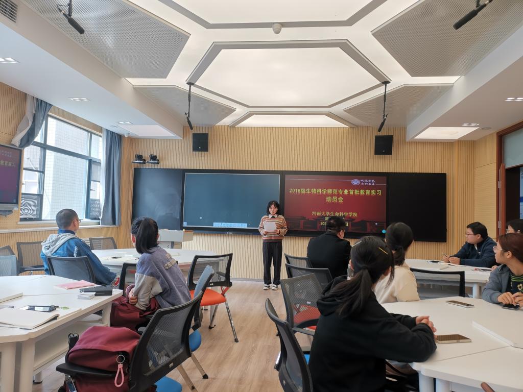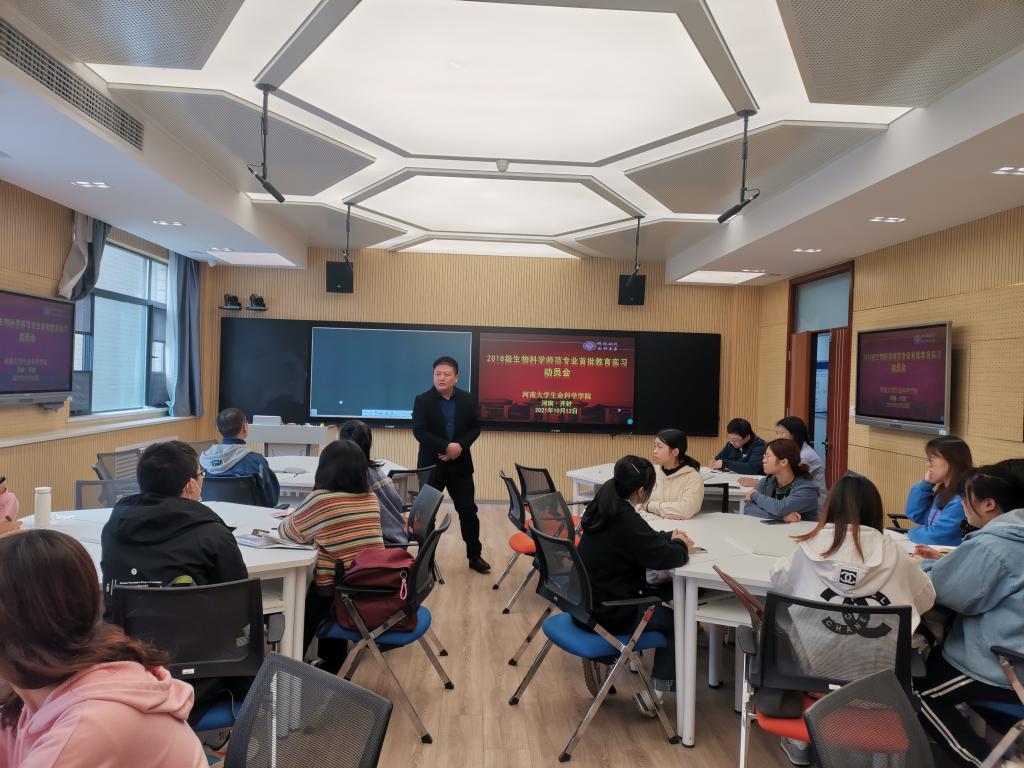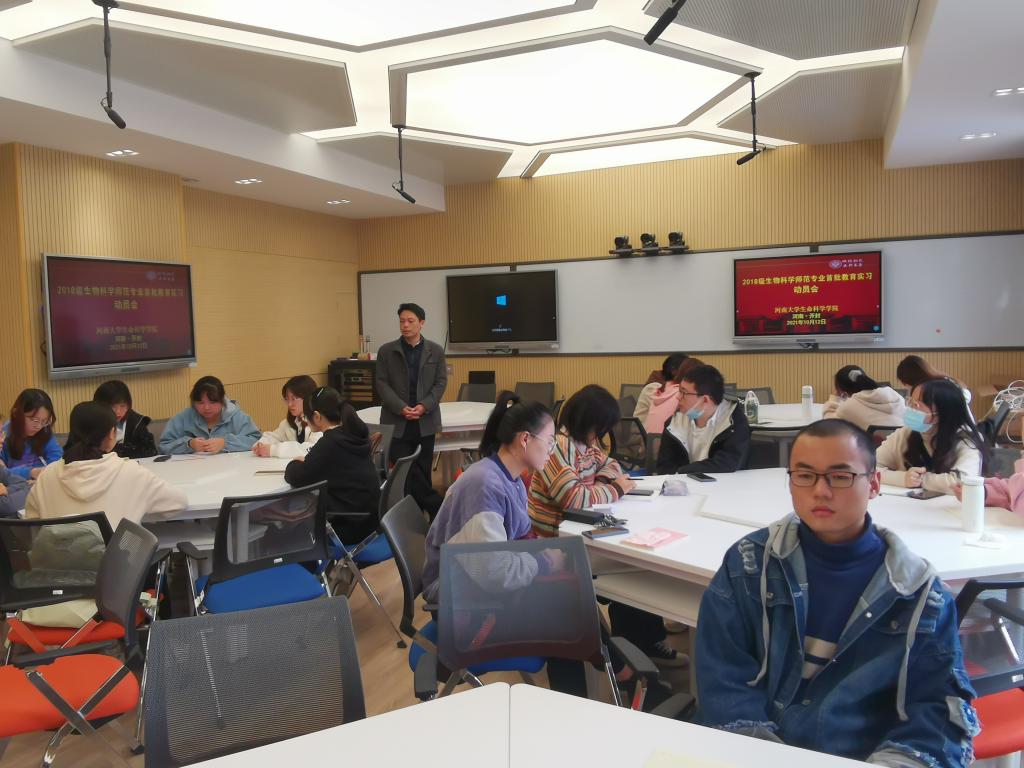 10月12日上午,2018级生物科学(师范)专业首批教育实习动员会于学院智慧教室举行,学院副经理赵海鹏,生物科学系主任刘凌云,副主任、实习队长肖保林,2018级辅导员李靖宇,全体实习员工参加会议,会议由刘凌云主持。