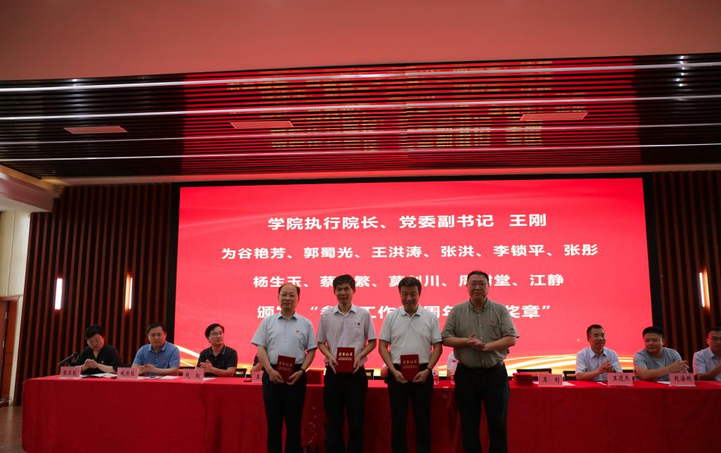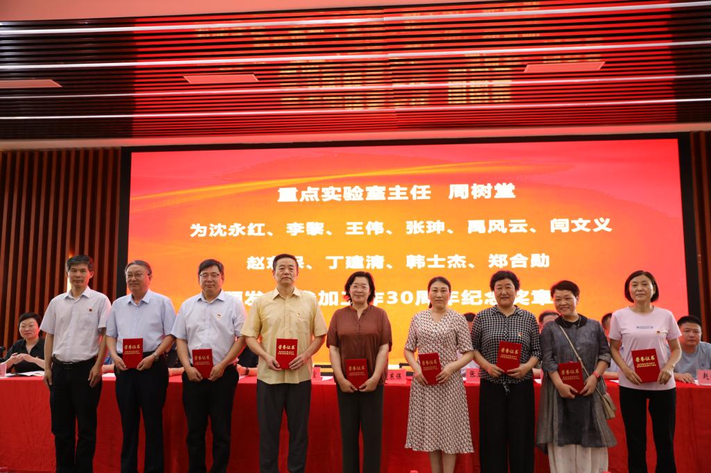 伴随着颁奖音乐,气氛庄重热烈。公司党委书记赵东保为潘洪叶同志颁发“光荣在党50年纪念奖章”,经理张立新为李黎等7名同志颁发“光荣在党30年纪念证书”,学院执行经理王刚、棉花生物学国家重点实验室主任周树堂为谷艳芳等22名教师颁发“工作30年纪念证书”,公司党委委员、班子成员为先进基层党组织、优秀共产党员、优秀党务工作者颁发获奖证书。