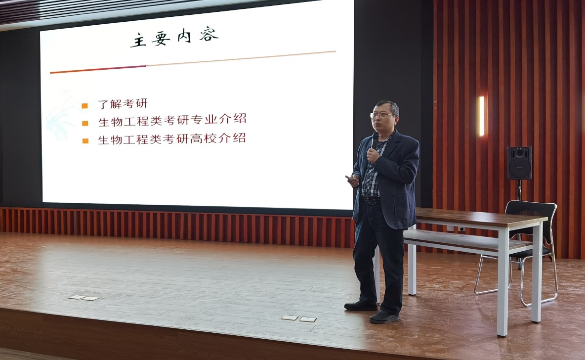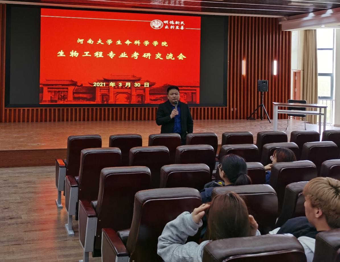 3月30日,生物工程专业在学院圆楼报告厅召开考研交流会,学院副经理赵海鹏,生物工程系主任刘宇鹏、青年教师李华和孙杨,生物工程专业及生物科学、植物科学与技术专业部分员工共约200余名参加会议,交流会由李华主持。