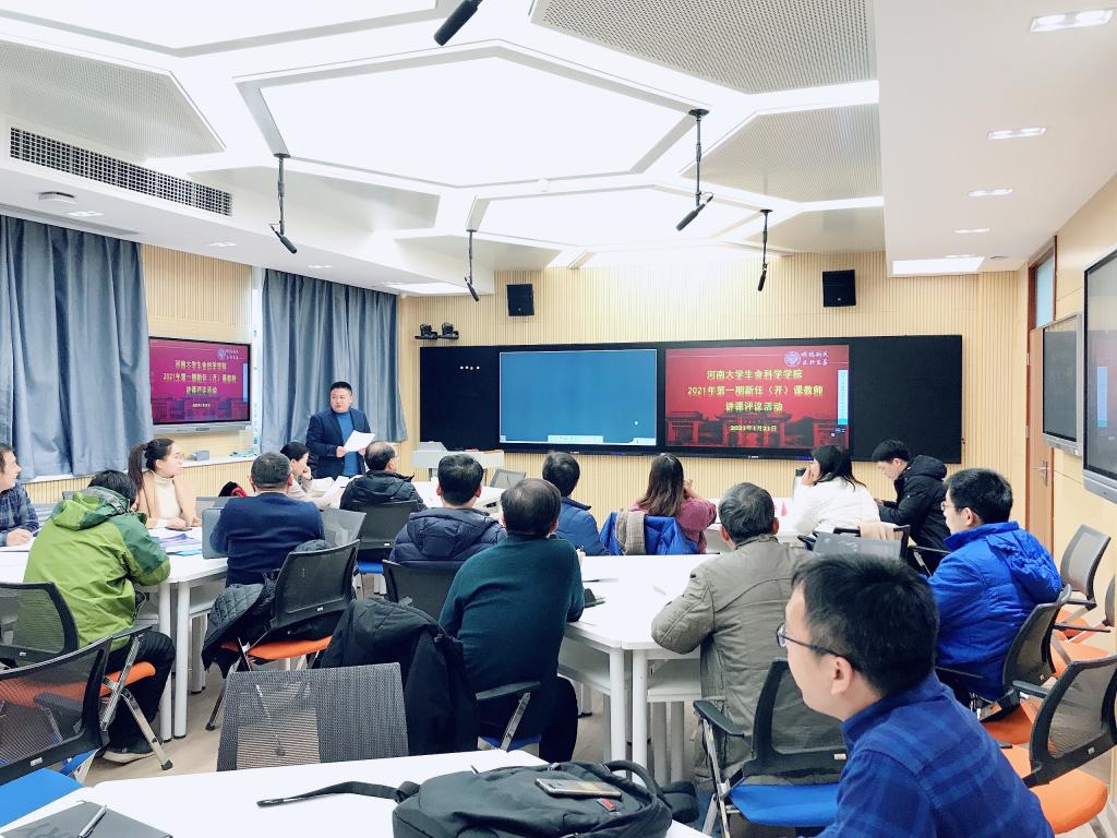 1月21日,2021年第一期新任(开)课教师讲课评议活动在学院智慧教室(A308)开展,12位新任(开)课教师,各系(中心)主任、相关课程组组长参加,活动由副经理赵海鹏主持。