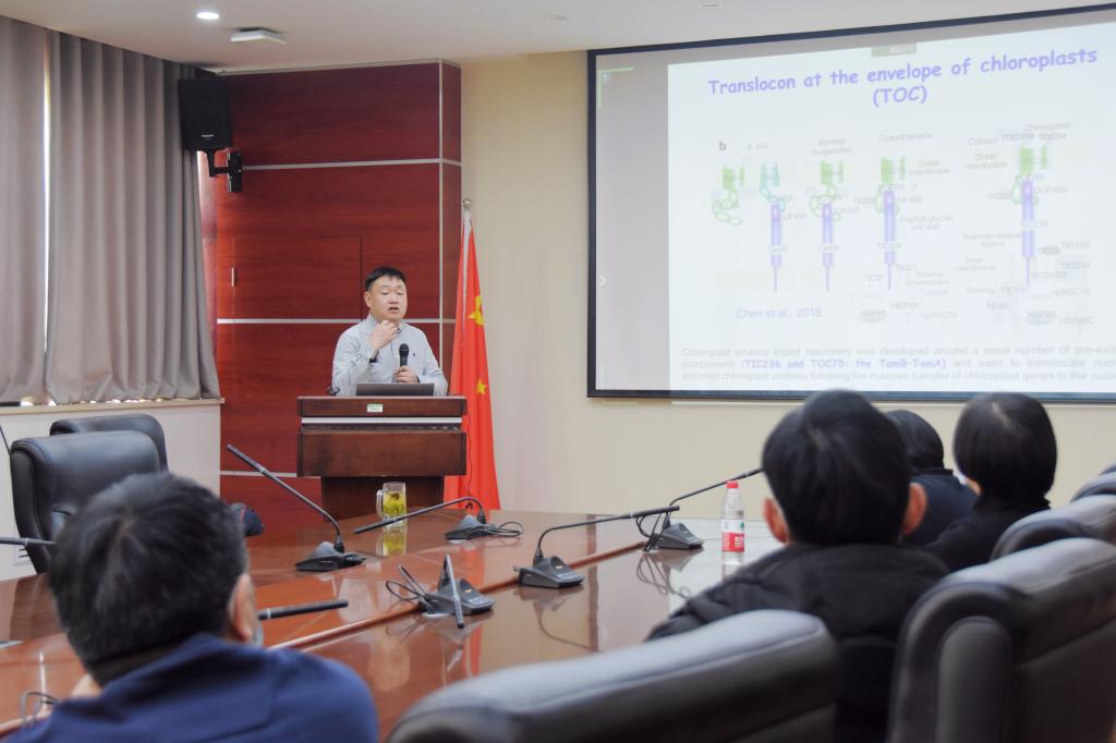 会议结束后,基础医学院从事病毒学研究的王泽坤教授表示,越来越多的研究表明相分离在细胞中普遍存在,与基因组的组装、转录调控,蛋白间的动态互作等可能密切相关,相分离的失调也可能是一些疾病(如神经/肌肉退行性疾病)发生的病因,相关领域的科学家也开始通过相分离这个视角重新审视相关疾病,通过干扰异常“相分离”来达到治疗相关疾病的目的,相分离或者说相变(Phase Separation,Phase Transition)可以说是目前最热的研究领域。张立新教授首次提出并阐明了相分离驱动叶绿体内蛋白分选的新机制。该研究发现了位于叶绿体基质的关键蛋白转运分选因子STT1与STT2,阐明了双精氨酸依赖途径蛋白通过相分离完成底物识别、分选以及靶定到类囊体膜的分子机制。这是非常有意义的一项工作,发表在生命科学领域的顶级杂志《cell》上实至名归。听完讲座深受启发,希望未来在病毒复制研究中晶体解析中碰到类似瓶颈问题可以从相分离角度分析,也许会有所突破。数学与统计学院从事计算数学的邹广安博士认为,聆听张立新教授的报告令人耳目一新。张教授团队首次提出并阐明了相分离驱动叶绿体内蛋白分选的新机制,通过大量的体内体外实验揭示了相分离形成液滴(liquid droplet)调控叶绿体蛋白的运输,从而调控叶绿体的生物发生。这种植物叶绿体内相分离(liquid-liquid phase separation)形成的液滴(liquid droplet)过程,与物理上的相变过程类似,或许可以借助数学上的Cahn-Hilliard相场模型来模拟相分离的动力学过程和机制,进而可以在数学模型中考虑温度变化对相变的影响,研究温度相关的liquid-liquid相分离现象。
