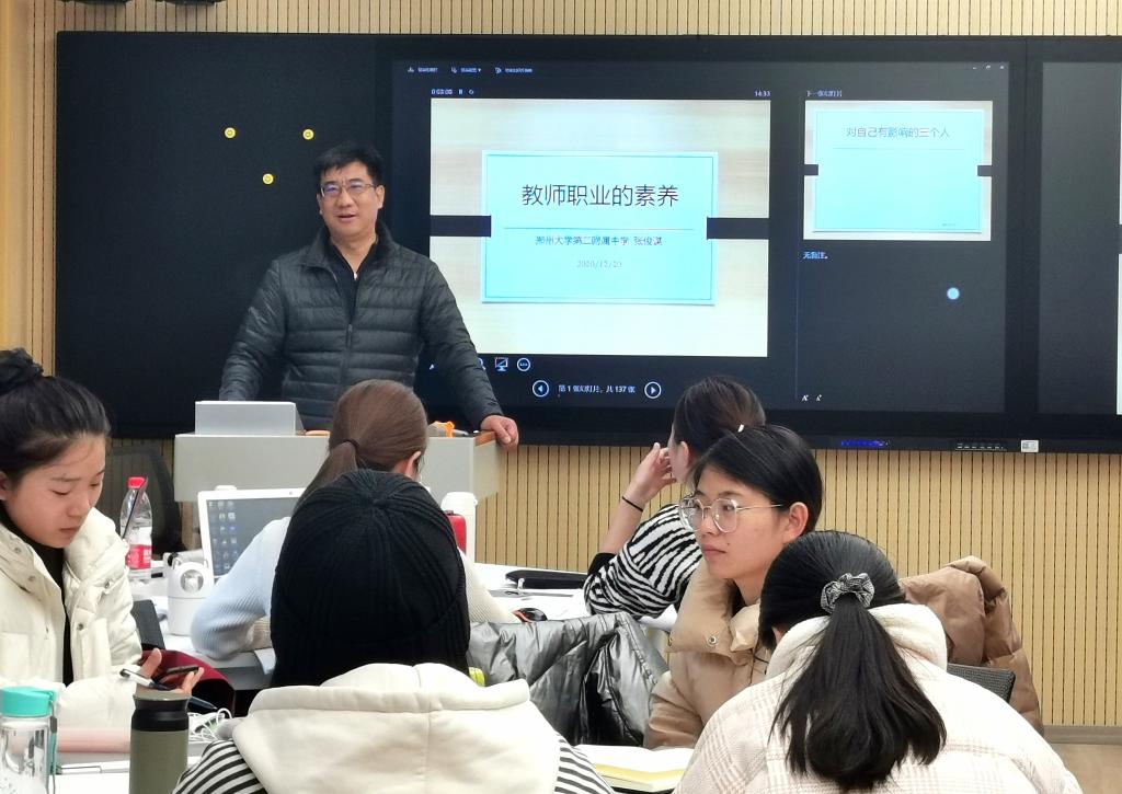 2020年12月20日下午,BWIN必赢官方学科教学(生物)专业组织的学术报告在生科院智慧教室305举行。郑州大学第二附属中学张俊谋在此作题为“教师的职业素养”的学术报告。此次报告会由张彤老师主持,BWIN必赢官方的学科教学(生物)专业全体研究生参与。