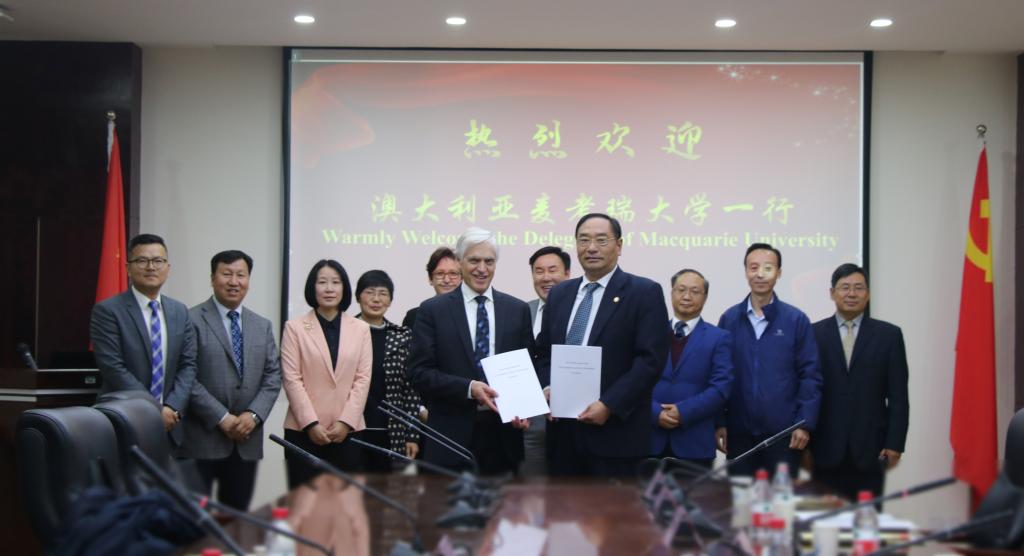 宋纯鹏董事长首先在董事长办公室会见了专程来访的麦考瑞大学代表团:科研副董事长Sakkie Pretorius教授、医学与健康科学学院科研副经理Roger Chung教授、高等学位HDR伙伴关系和奖学金办公室副主任Kate Roth女士。宋董事长对Sakkie Pretorius副董事长领衔的麦考瑞代表团的到来表示热烈欢迎,并对两校前期的联合创新中心筹备工作表示充分肯定,希望双方以联合创新中心成立为新的契机,在生物学、农业、医学等多个相关领域加强对话,开展更深度的合作。