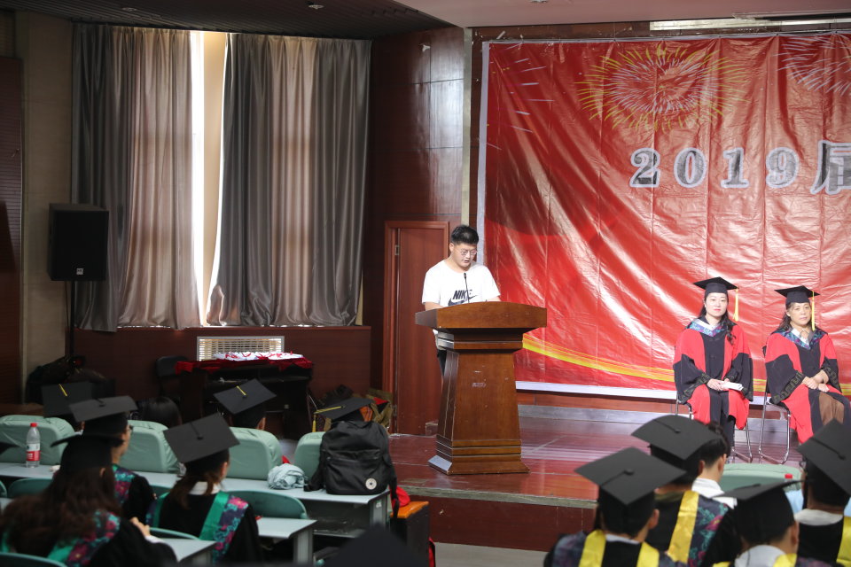 毕业生代表2015级植物科学与技术专业许玲玲同学发言,她深情地表达了对学校的依恋和对师长的感谢,牢记校训,永记院风,谨遵师训,归来仍是少年。在校生代表2016级生物工程专业黄洪潺同学发言,他感慨时光飞逝,对即将离校的学长学姐们充满不舍,满怀祝福。