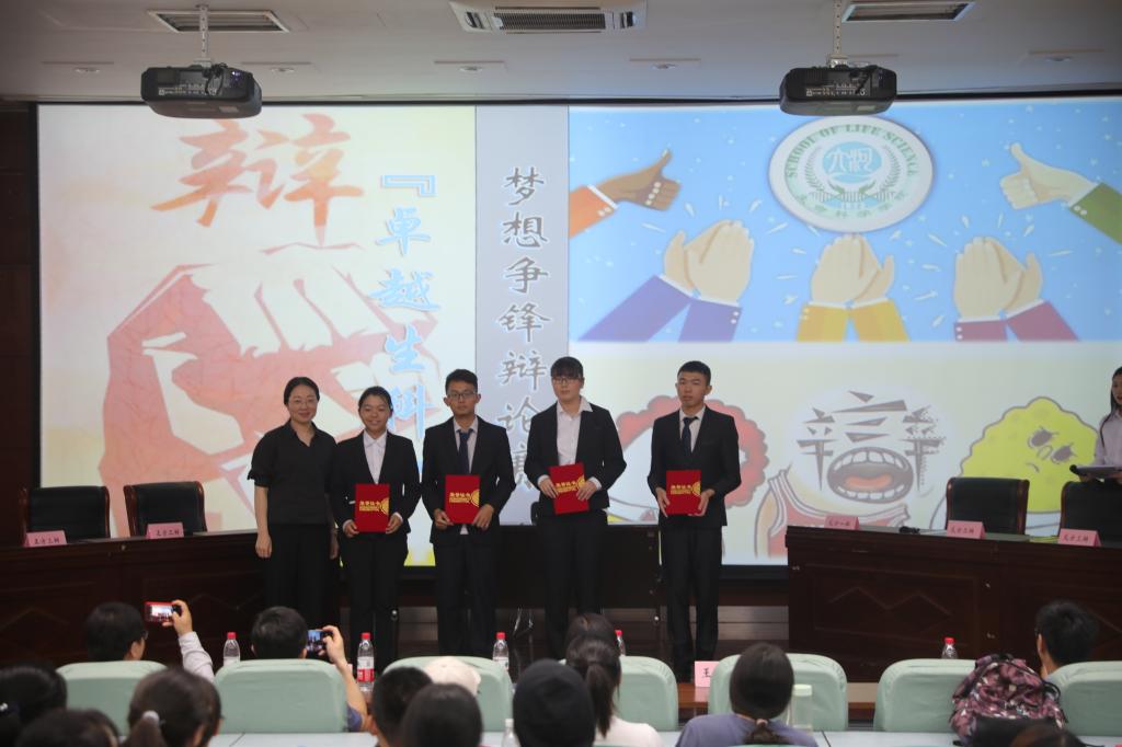 颁奖环节中,张亚歌老师为获得冠军的队伍颁奖,李志芳老师为获得亚军的队伍颁奖,祝英方老师为最佳辩手王冰洁颁奖,王松廷老师为赵凌萱、付湘瑜、柴知荣等优秀辩手颁奖,最后合影留念。