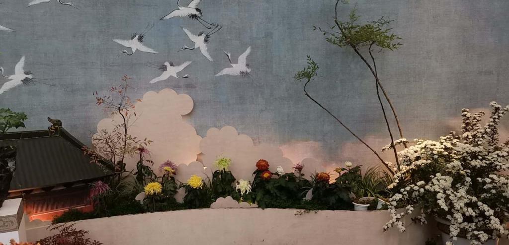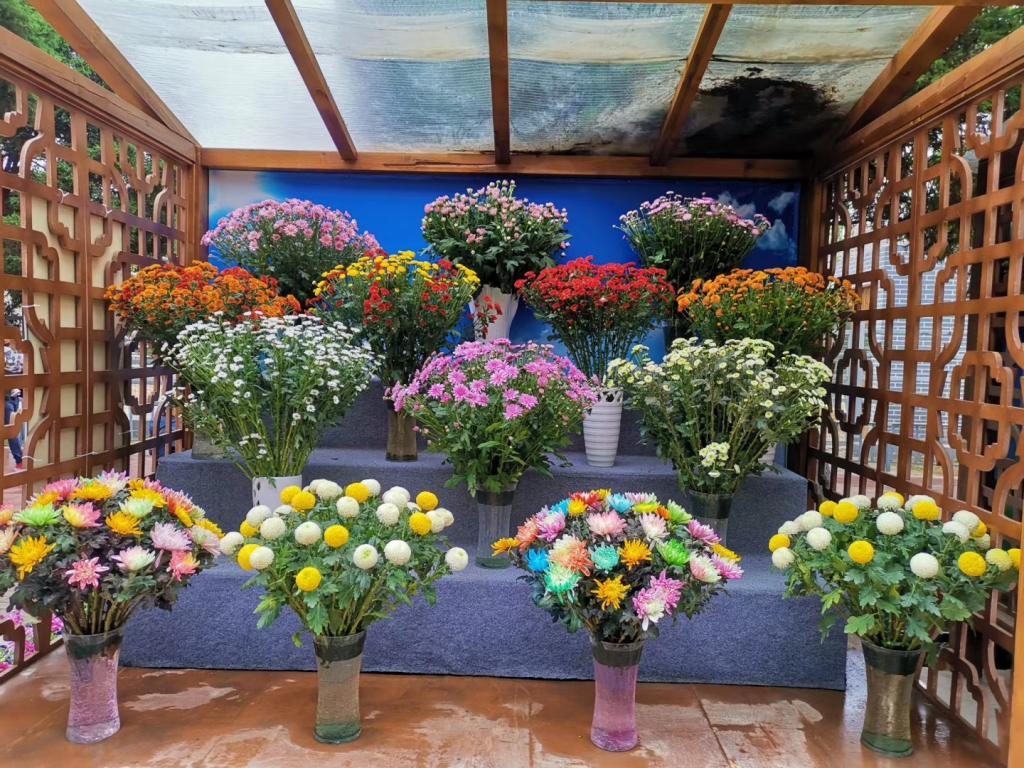 本届展会共布置各类菊花3万余盆、艺菊80余盆、各类陪衬花卉2万余盆,包括精品菊、炫彩菊、艺菊、插花、果木盆景、绿雕、卡通造型等;设置了“汴梁八景”“丝路花语”“汴京菊韵”等20余组菊花景点;精品展台布展了“南山篱菊”“烟雨江南”等精品小景;牡丹、芍药、高杆月季等春季时令花卉与菊花同时绽放。公司2019届植物科学与技术专业部分正在实习的毕业生参与了菊展布展工作,他们在实践工作中得到了锻炼和提高。
