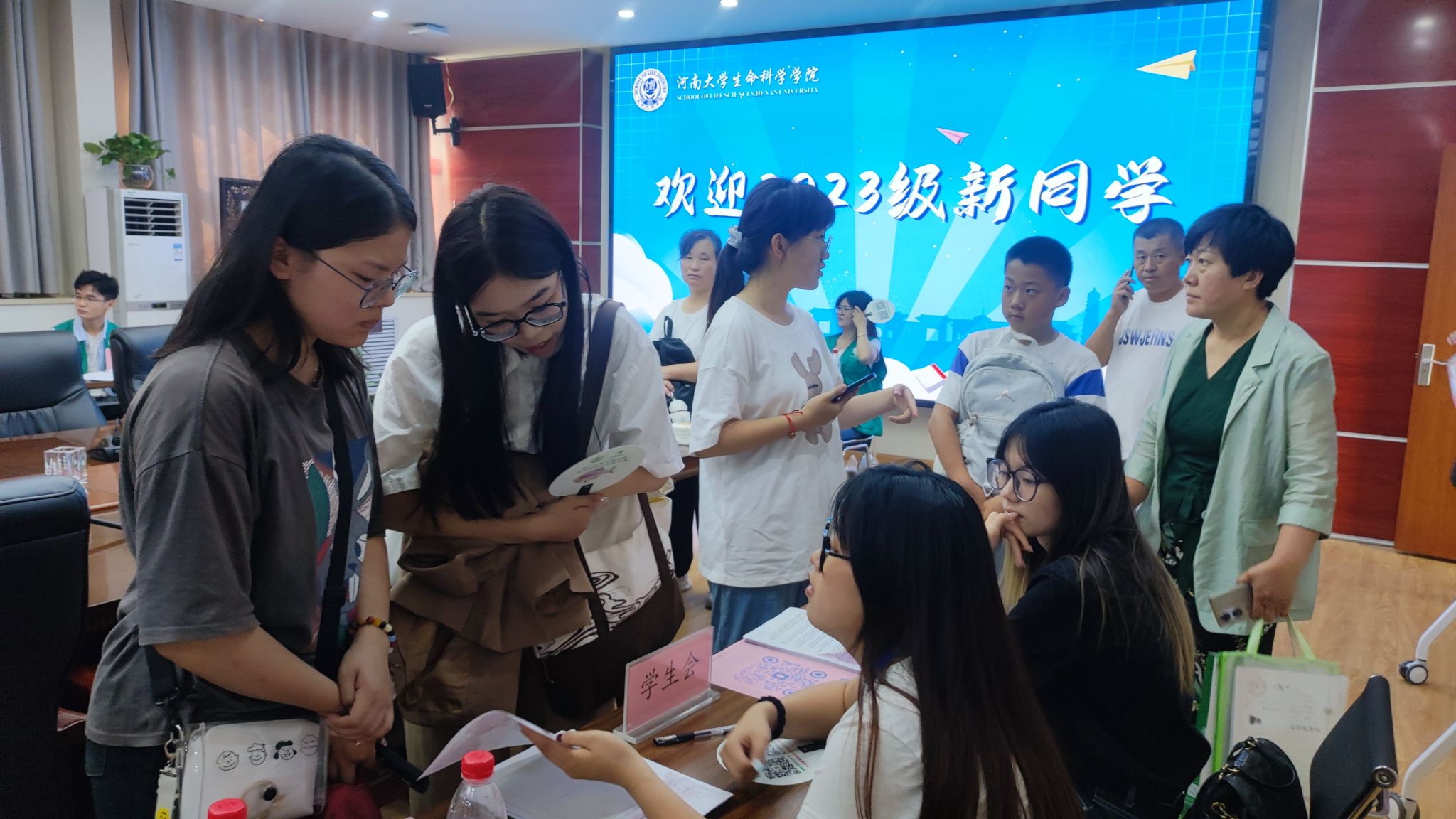 公司为新生们准备了校徽、植物图谱、生物书籍等入学礼,尽显人文关怀。虽然天气炎热,却也无法阻挡志愿者们热情的步伐,他们时刻奔波在路上,为生科“小23”指引路线、搬运行李。一项项贴心的服务,一句句亲切的问候,欢迎着来自祖国各地的生科学子。面对新生初来的好奇和疑问,志愿者们热情地答疑解惑,耐心地向新生们介绍学院的基本情况和多姿多彩的老员工活,“青蓝结对”活动也为新老生的沟通搭建了桥梁。新生和家长们纷纷在学院楼前背景墙留念打卡,定格下这特殊而又美好的瞬间。