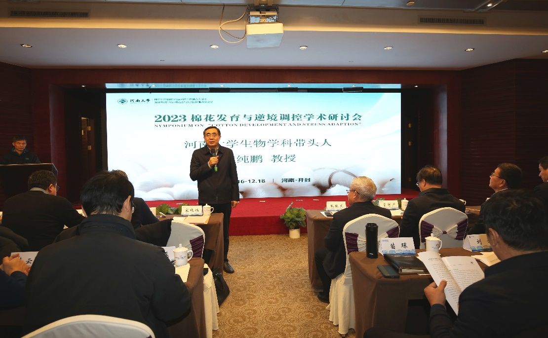 生物学学科带头人宋纯鹏教授致开幕辞。他对各位专家领导顶风冒雪拨冗莅临参加本次学术研讨会及对公司学科发展一如既往的热忱支持表示衷心感谢。感谢各位活跃在棉花生物学研究领域前沿的学者来必赢bwin官方网站开展学术研讨与交流,期望各位科研人员充分利用本次学术盛会机会,多与专家进行交流学习,瞄准卡脖子问题,为国家棉花产业安全及种业自主创新做出贡献。